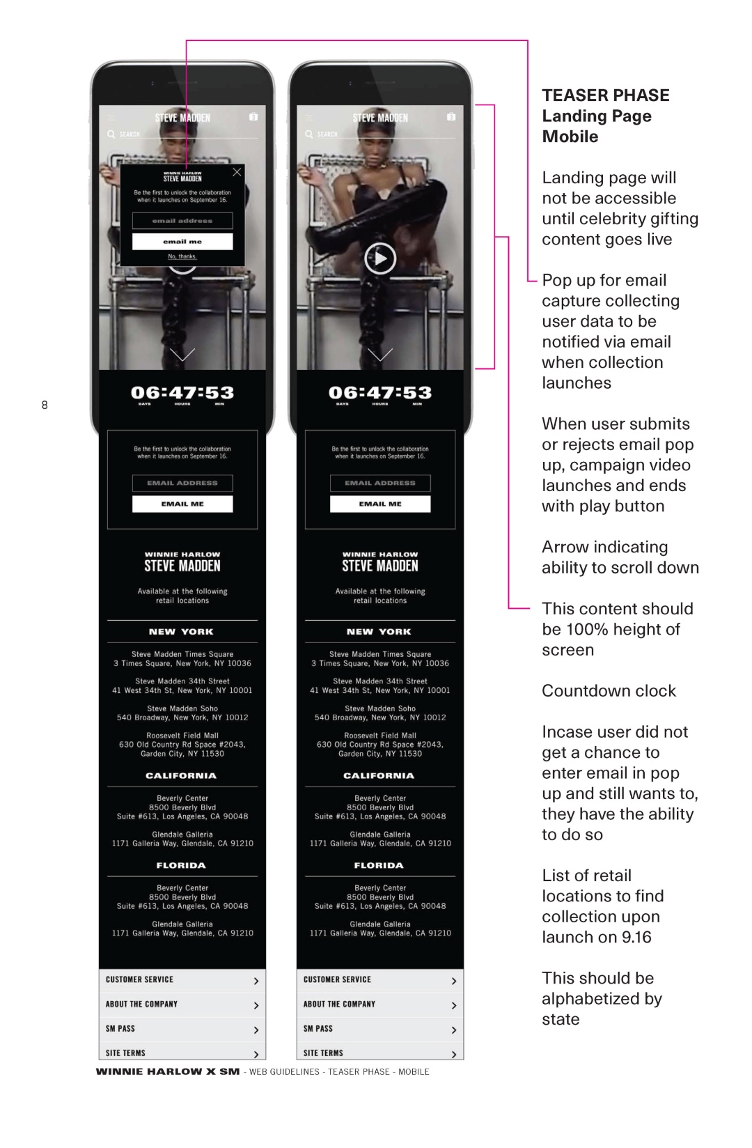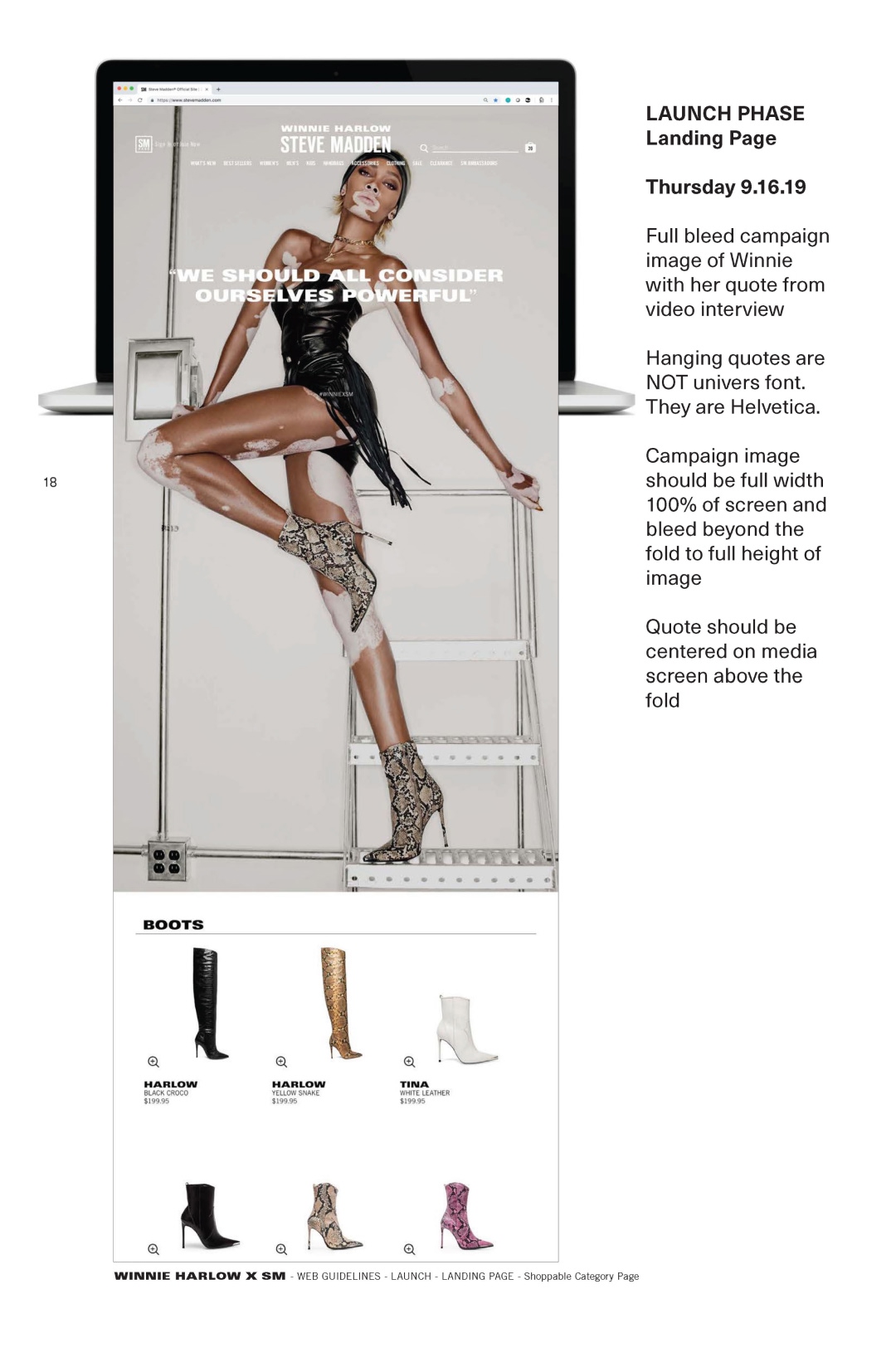 The digital destination was a custom shoppable collection page experience. The design features an immersive hero image with parallex scroll that snaps to carefully curated trend sections of styles ranging from boots and booties to heels and sneakers.